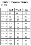 • Sizes 8 – 16: 1.75m / 2yds • Sizes 18 – 26: 2m / 2.25yds