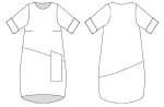 The Eclipse Dress is a loose-fitting delicate bubble shape with a diagonal style line that wraps around the dress. There is an oversized patch pocket with a secret second pocket hidden inside. There is a softly curved scoop hem that drops down at the back and is finished with bias binding. You have the option of sleeveless or with elbow length sleeves with a chunky foldback. There are lengthen / shorten lines to allow you to adjust to above the knee or to suit your taste. The Eclipse Dress goes on over the head with no need for a zip.
